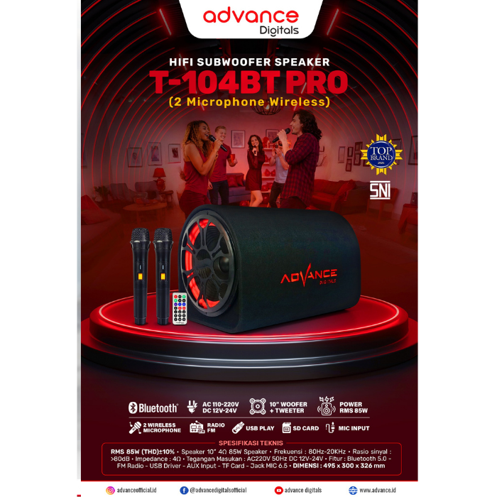 Speaker Bluetooth Advance T-104BT Pro 2 Mic