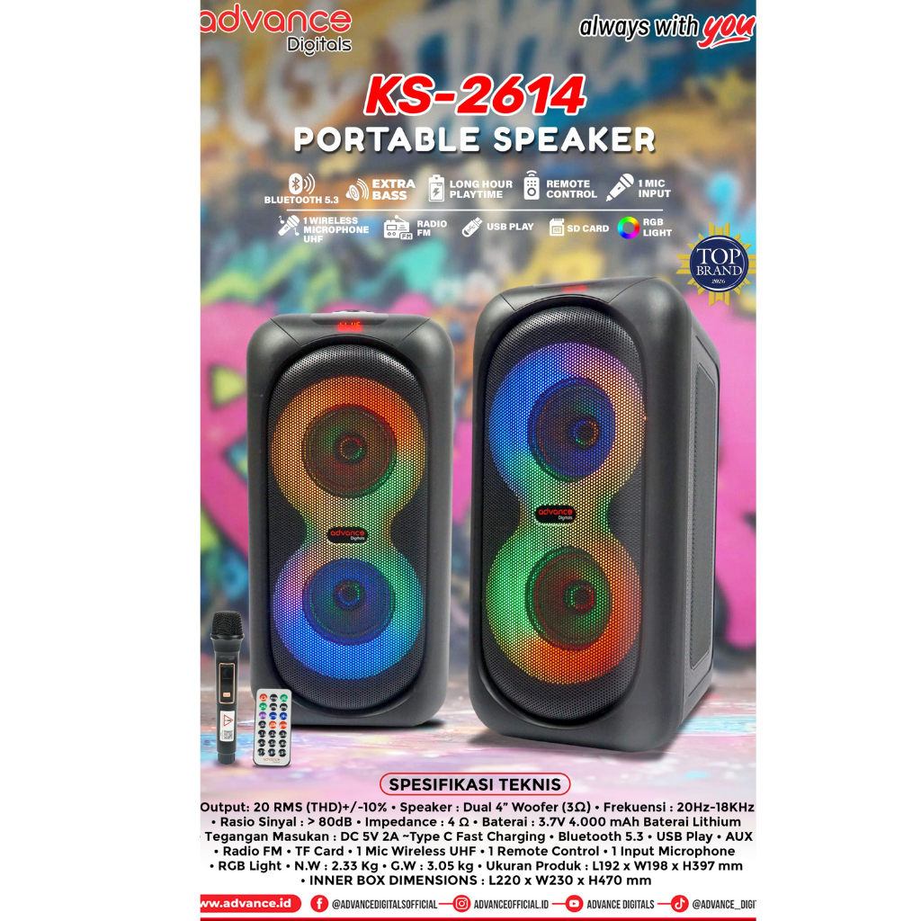 Advance Speaker KS-2824 Portable Bluetooth Speaker Bass