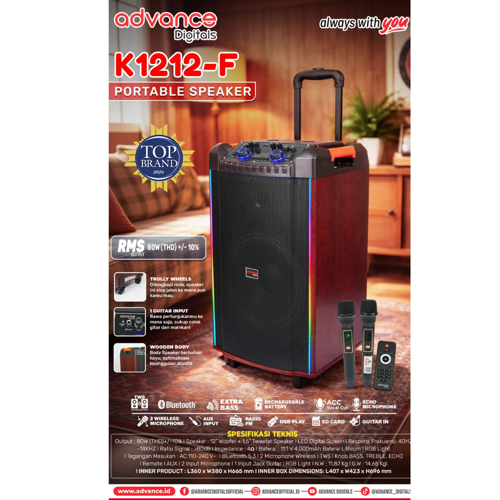 Advance Speaker Bluetooth K1812-E Suara Jernih Bass Kuat