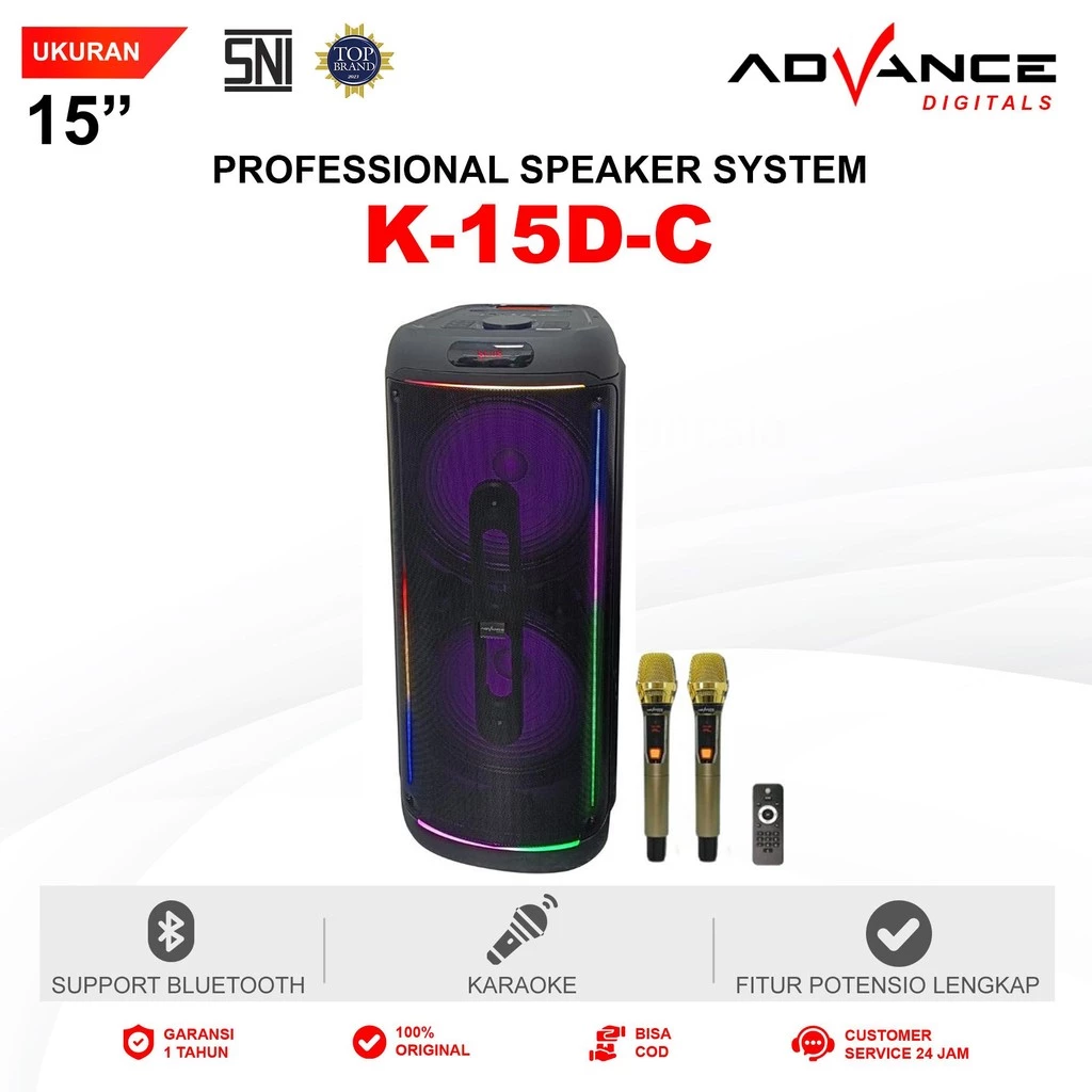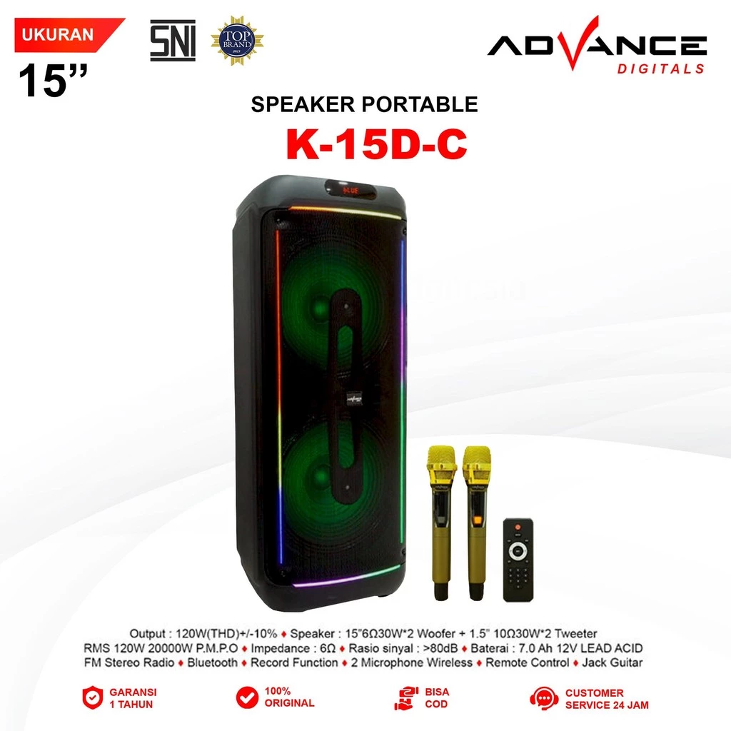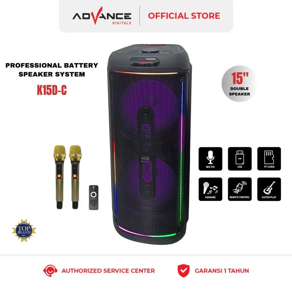 Advance K15D-C Speaker Professional Battery System 15″ Double 2 Mic Wireless Input Gitar Baterai 7000 mAh