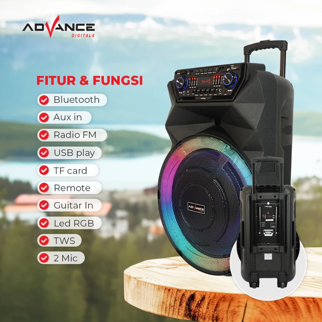 Advance K1812D Speaker Meeting Postable Full Bass Ukuran 18 inch FREE 2 Microphone Wireless Garansi Resmi 1 Tahun