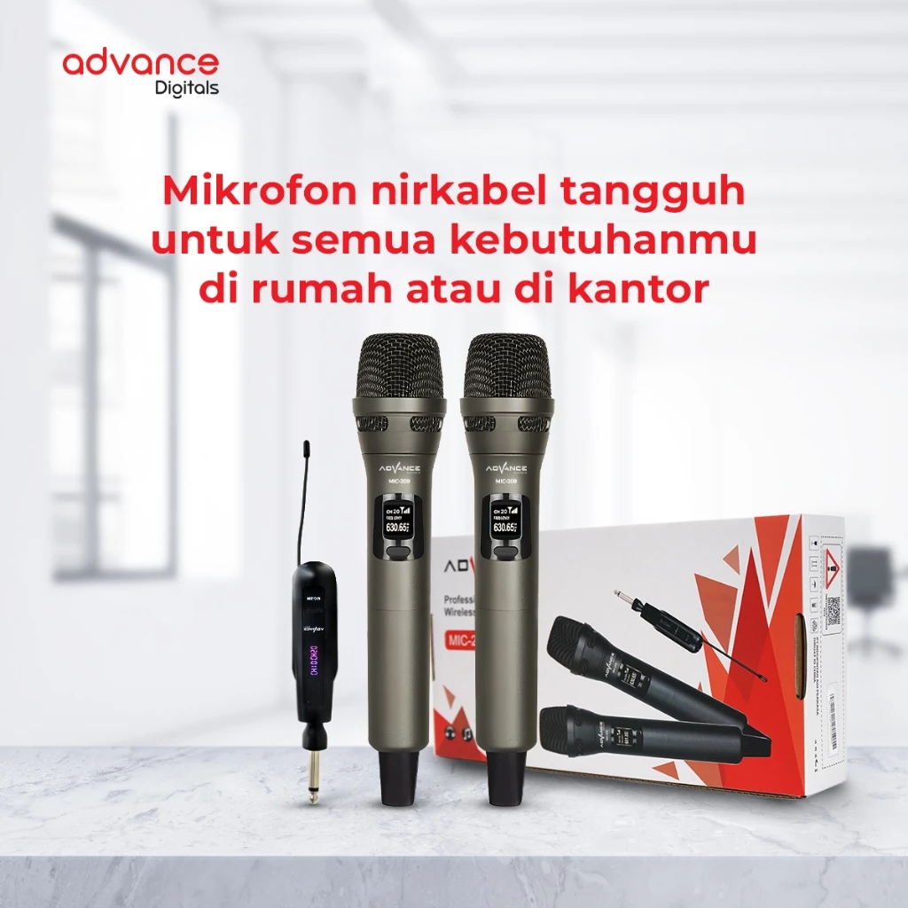Advance MIC-303 Dual Professional Microphone Wireless Reduce Noice Jack 6,5mm Garansi Resmi 1 Tahun