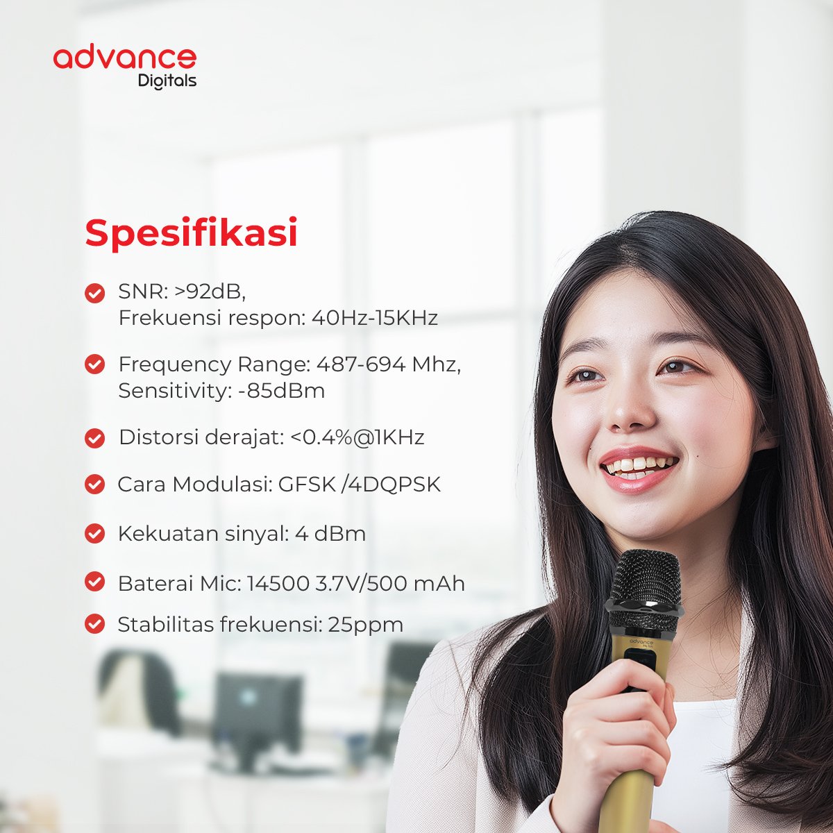 Advance Mic-2217 Microphone Kabel Suara Jernih Cocok Karaoke & Recording