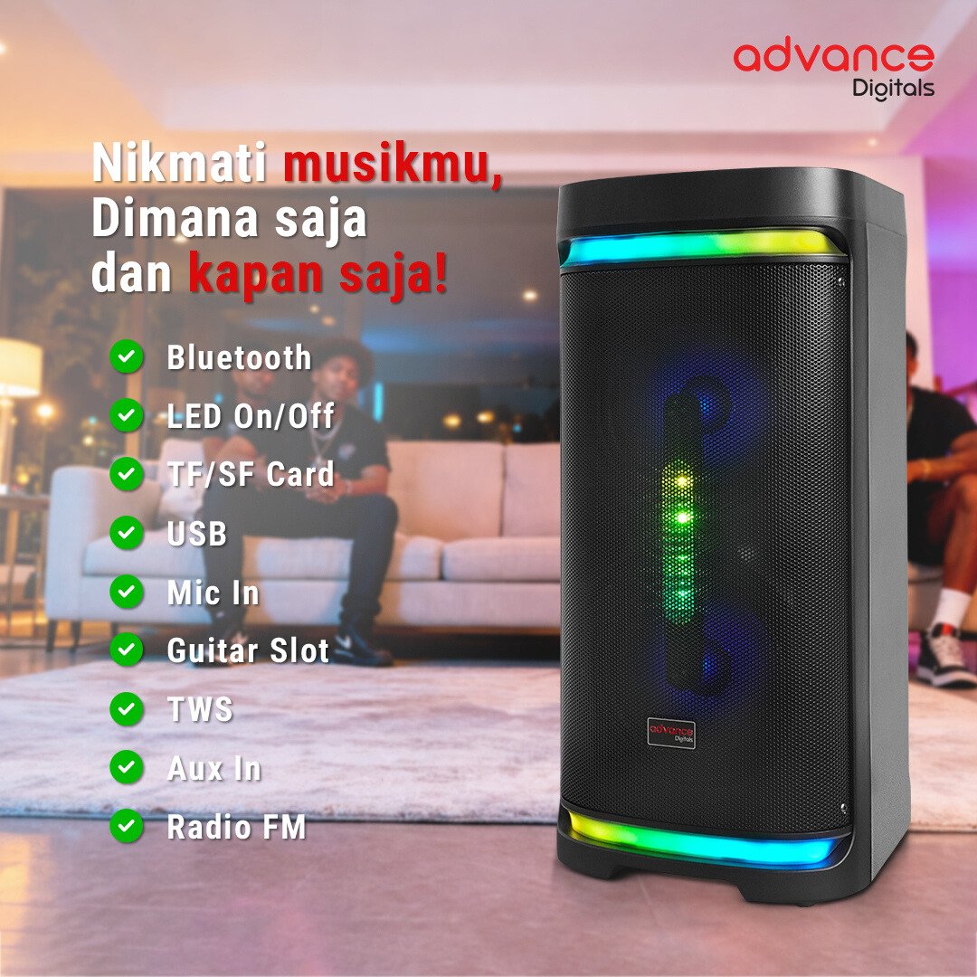 Nikmati pengalaman mendengarkan musik yang lebih seru dengan Advance Speaker Bluetooth K8D-E. Speaker portable ini dirancang dengan teknologi Bluetooth yang stabil sehingga mudah terhubung dengan berbagai perangkat seperti smartphone, tablet, laptop, dan perangkat lainnya. Dengan desain yang compact dan modern, speaker ini sangat cocok digunakan di rumah, kantor, maupun saat bepergian.
