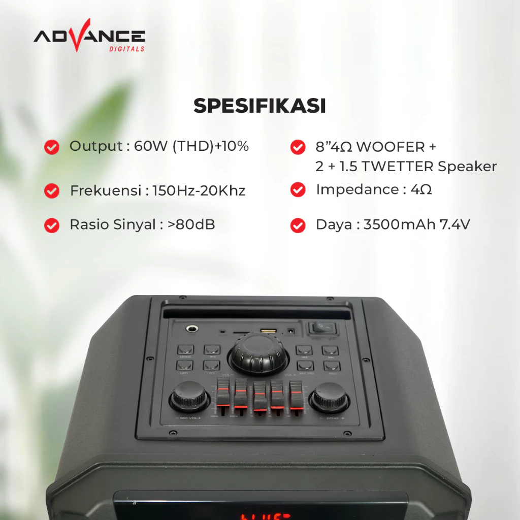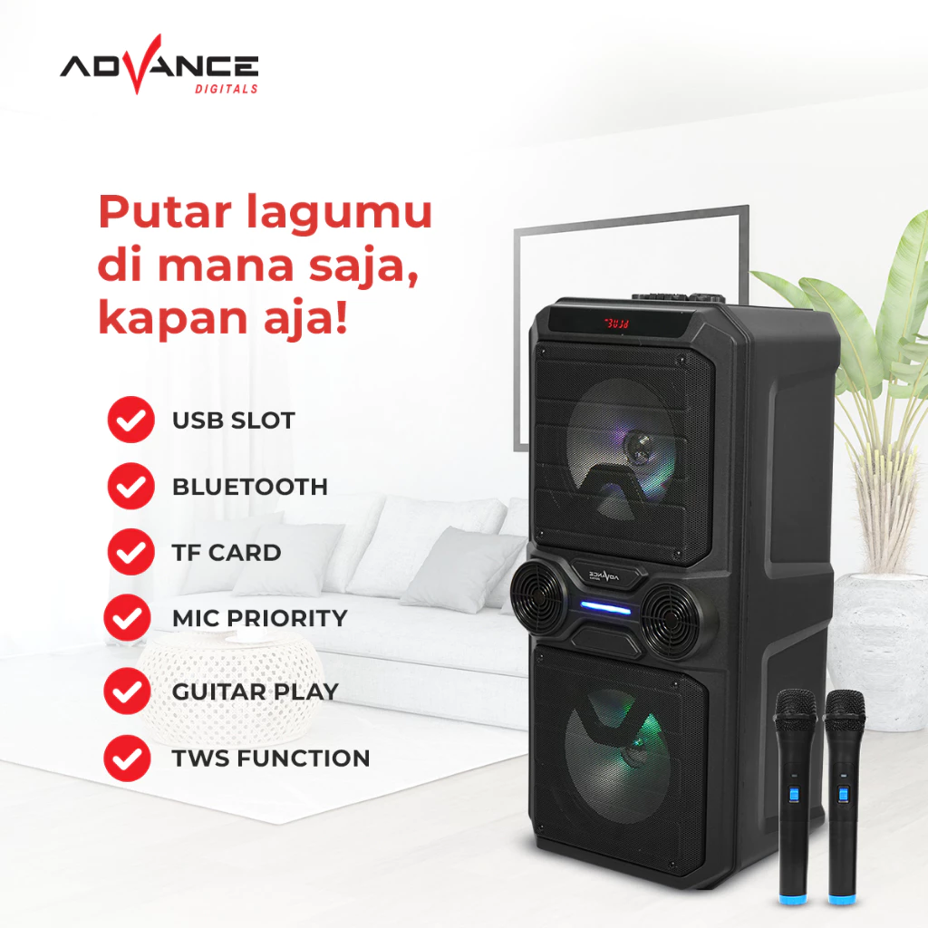 ADVANCE K1512-H Speaker Bluetooth 15 inch 2 Mic Wireless Indoor/Outdoor Garansi Resmi 12 Bulan
