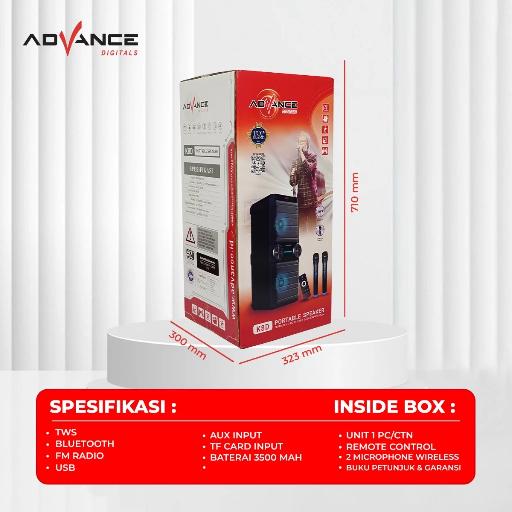 Advance K1812D Speaker Meeting Postable Full Bass Ukuran 18 inch FREE 2 Microphone Wireless Garansi Resmi 1 Tahun