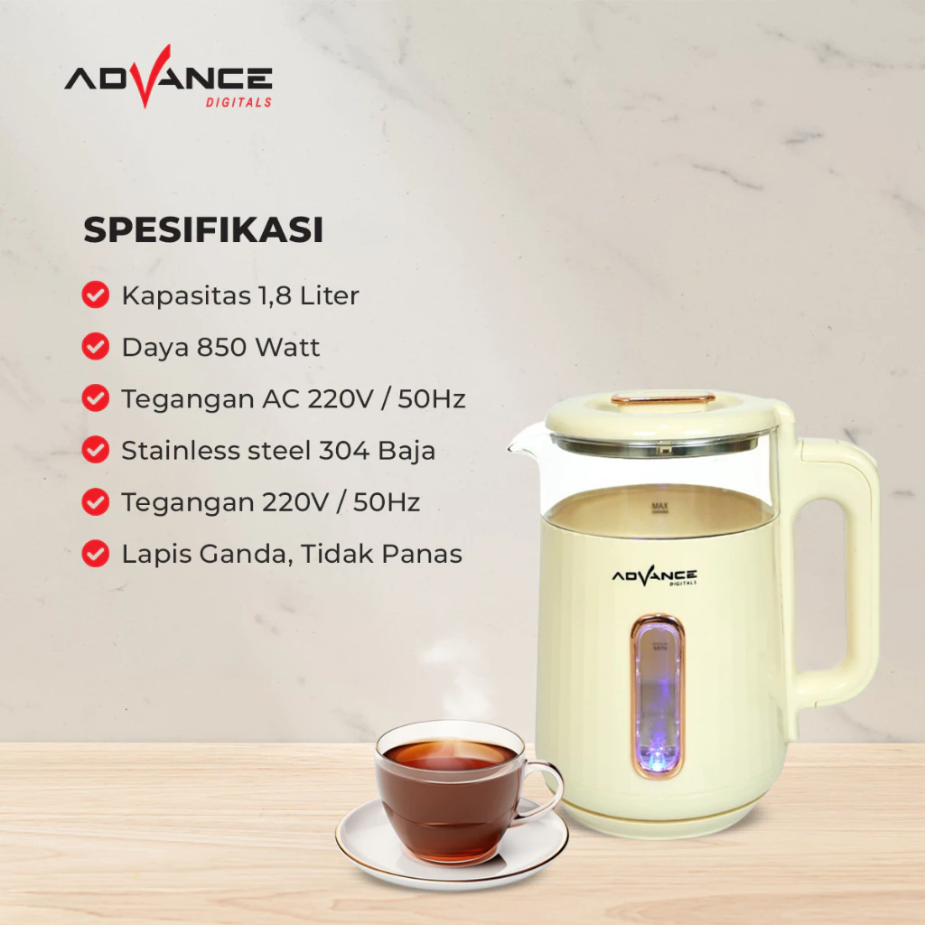 Advance Teko Listrik AK-301 kapasitas 1,8 liter Garansi 1 Tahun