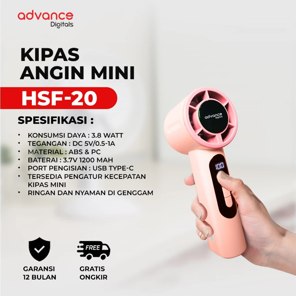 Kipas Angin Advance HSF-20 Saku Minifan Kipas Angin Portable Recharger Type C Kipas Angin Turbo