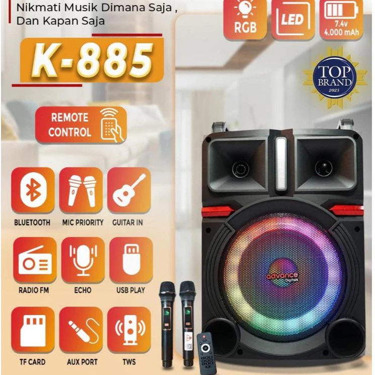 ADVANCE K1512-H Speaker Bluetooth 15 inch 2 Mic Wireless Indoor/Outdoor Garansi Resmi 12 Bulan