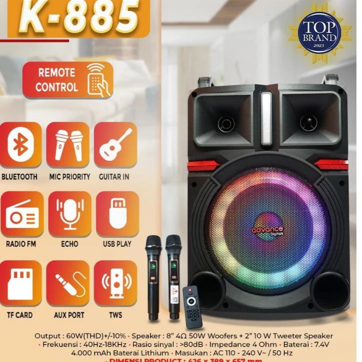 Advance K1812D Speaker Meeting Postable Full Bass Ukuran 18 inch FREE 2 Microphone Wireless Garansi Resmi 1 Tahun