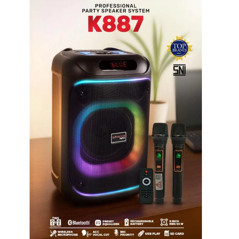 AUX, 2 Mic, Remote, Led RGB, Mic in