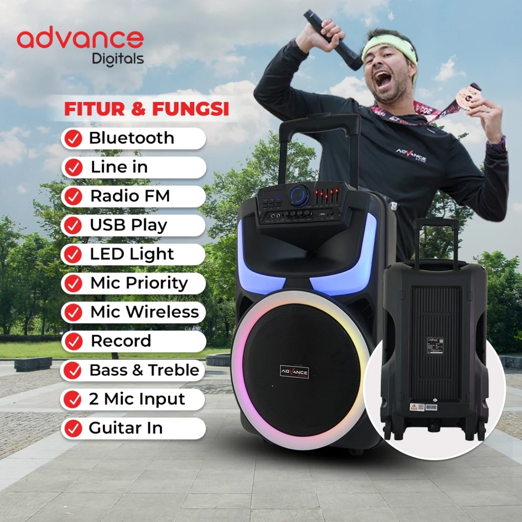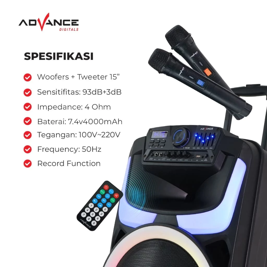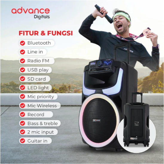 ADVANCE K1512-H Speaker Bluetooth 15 inch 2 Mic Wireless Indoor/Outdoor Garansi Resmi 12 Bulan