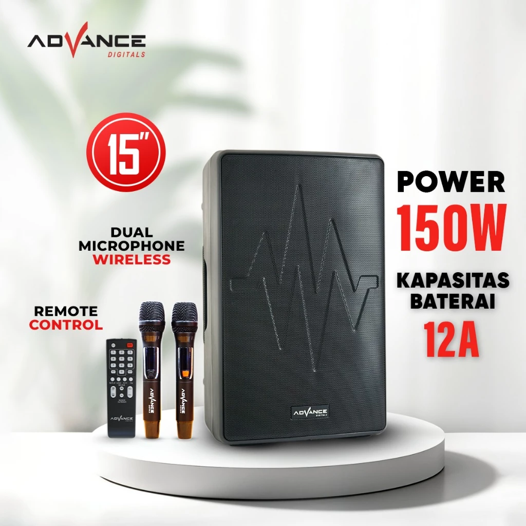 Advance K1512D Speaker Meeting Bluetooth Full Bas 15 inch Free 2 Microphone Wireless Garansi 1 Tahun