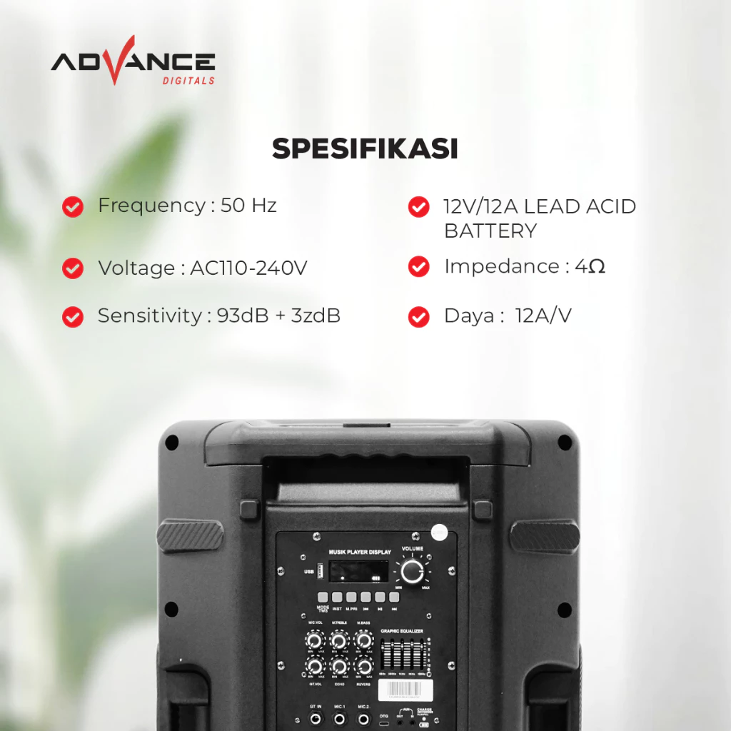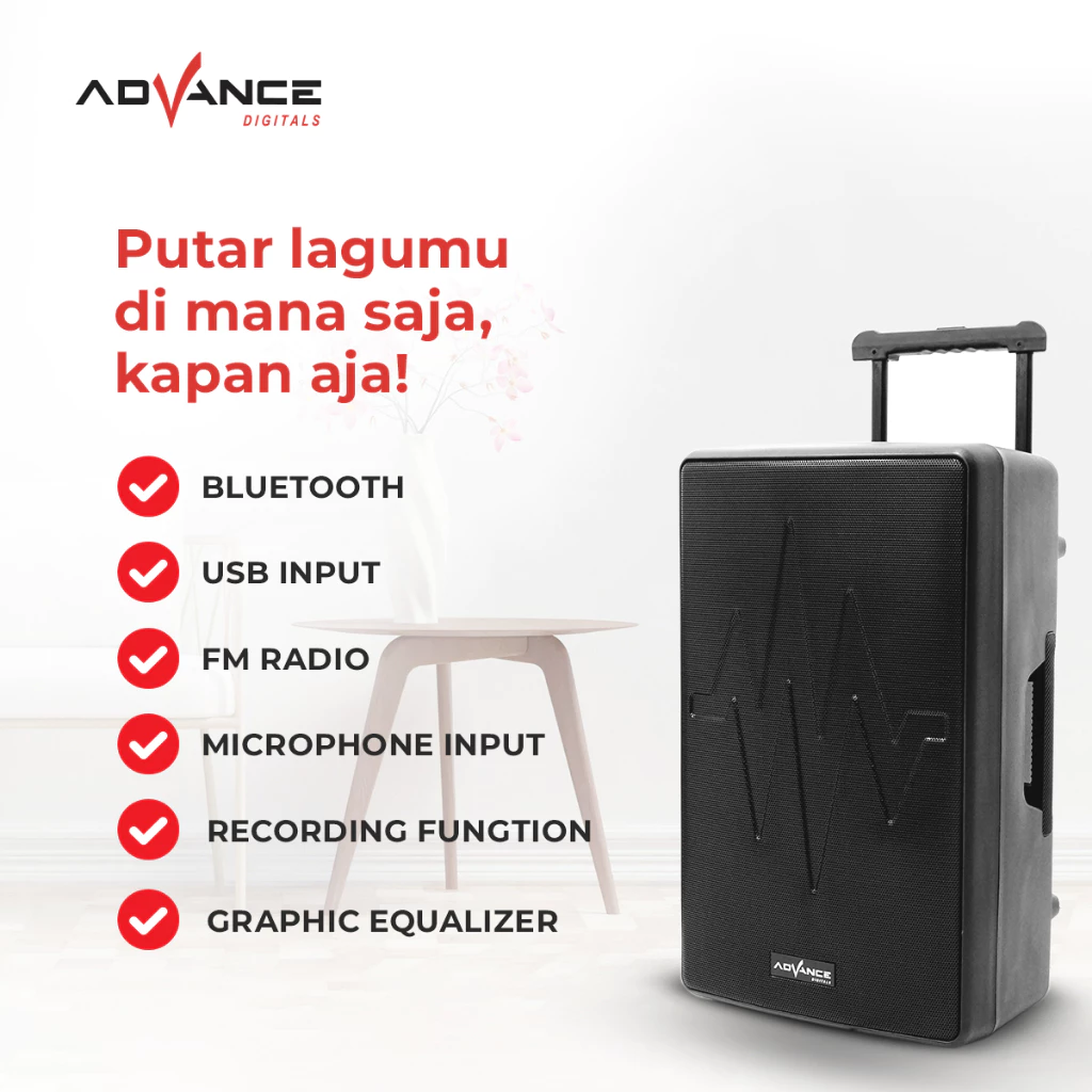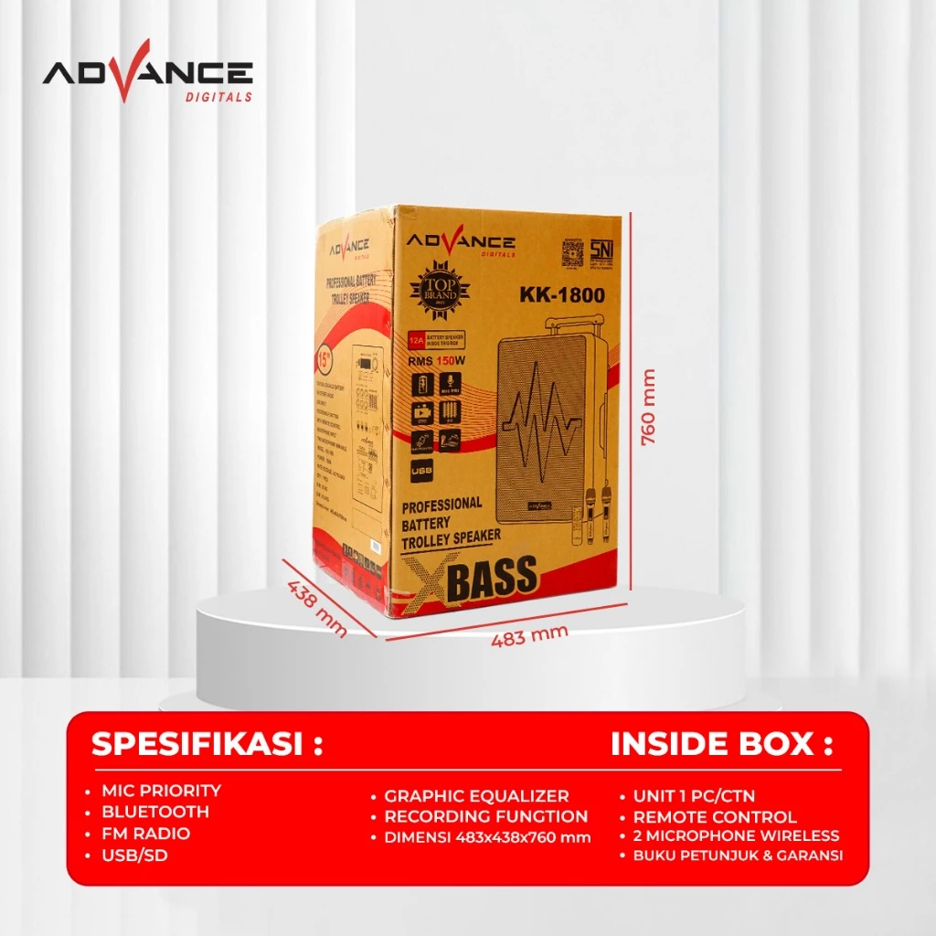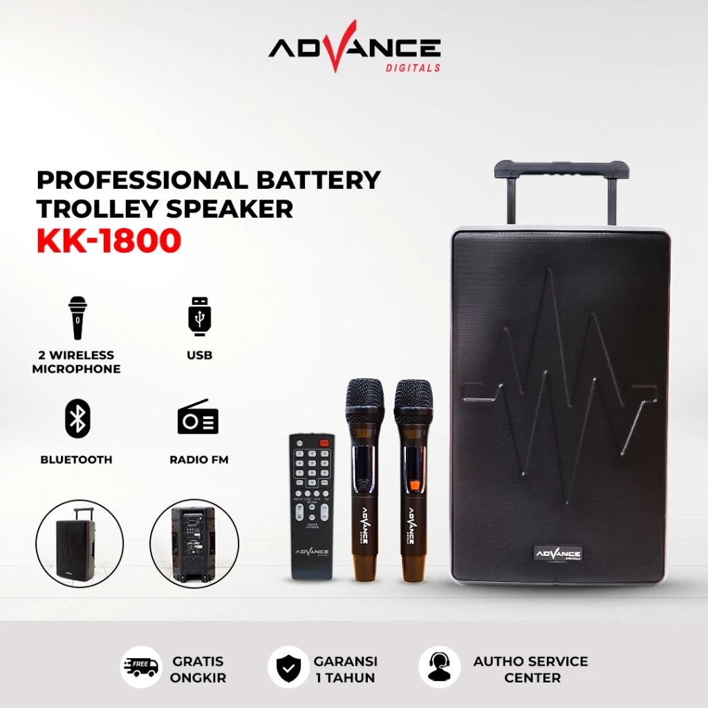Advance K1812D Speaker Meeting Postable Full Bass Ukuran 18 inch FREE 2 Microphone Wireless Garansi Resmi 1 Tahun